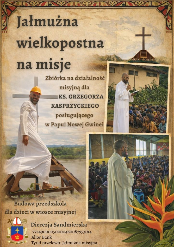 4. Wielki Post przynosi wezwanie do spełniania uczynków pokutnych takich jak post, modlitwa i jałmużna. W ramach jałmużny możemy nabywać baranki wielkanocne po 8 zł przygotowane przez Caritas Sandomierską. Możemy także zbierać ofiary do skarbonki, nie z tego co nam zbywa ale z tego czego się wyrzekamy w Wielkim Poście Solidarność polega na tym aby podzielić się tym czego mamy niewiele, z tymi, którzy nic nie mają. Skarbonki przyniesiemy w Niedzielę Miłosierdzia i złożymy jako nasz duchowy dar pod ołtarzem.